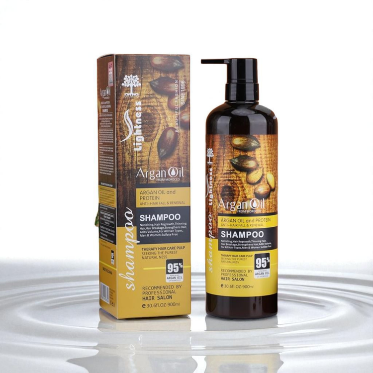 - شامپو آرگان لایتنس فری سولفات که حاوی ۹۵ درصد روغن آرگان و همینطور ابریشم مایع است. شامپو بدون سولفات مناسب کسانی هست که موهای خود را درمان کرده اند.